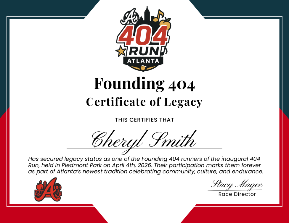 The 404 Run is Atlanta’s newest signature running event, created to honor the city’s unique culture, community, and area code (4.04 miles). This inaugural run will be on 404 Day, Saturday April 4, 2026. The event blends fitness, pride, and celebration into an unforgettable one-of-a-kind experience. This will be a fast course that will lead runners on an electrifying journey through some of the most beautiful and iconic areas of the city. Culminating in a celebration that only Atlanta can pull off. The 404 Run isn’t just a race — it’s Atlanta on display.